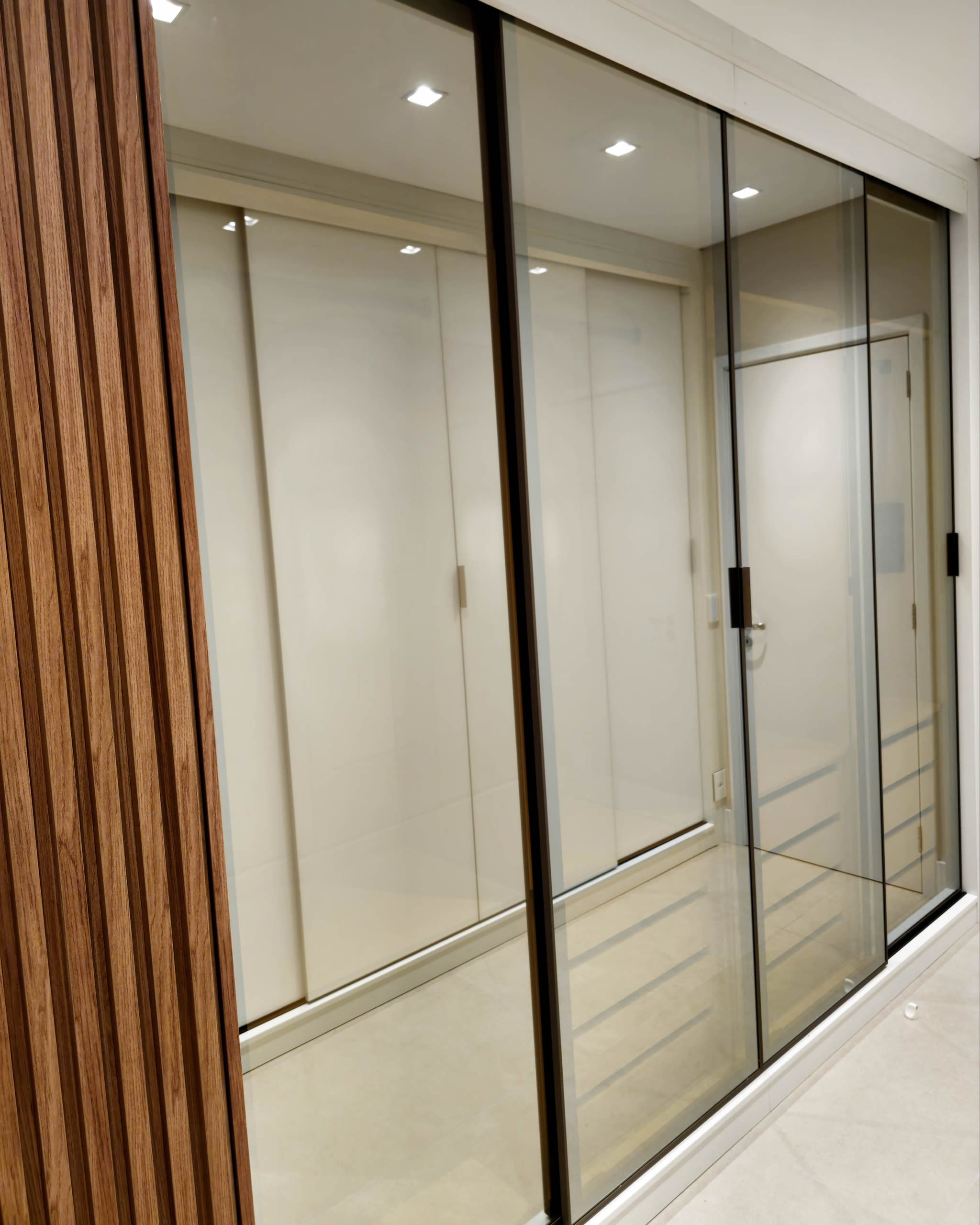 A project that used a lot of glass doors, slatted panels, beaded panels, and leather pattern laminate panels.