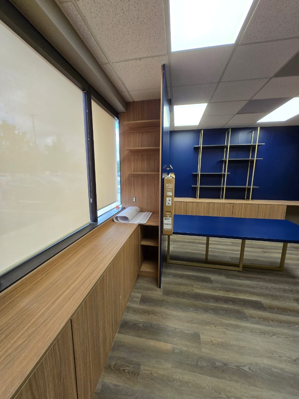 We used 3 different tones: Gengibre wood tone, Chumbo Micro solid tone, and special blue Lacquer paint tone, specially developed for the project, based on a Pantone scale choosen by the costumer.